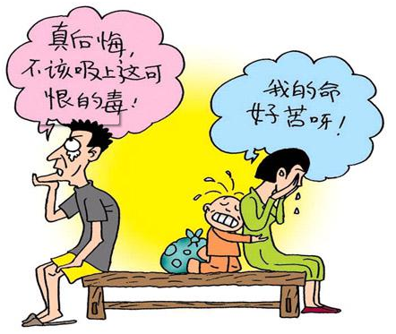 当家庭成员中有人吸毒时,家庭就不再是原来的家庭了。吸毒者在自我毁灭的同时,也破坏了自己的家庭,使家庭陷入了经济困难、亲属离散、甚至家庭破裂的困境。怀孕的妇女吸毒会严重影响胎儿的正常发育,甚至导致新生儿先天畸形或染上毒瘾。