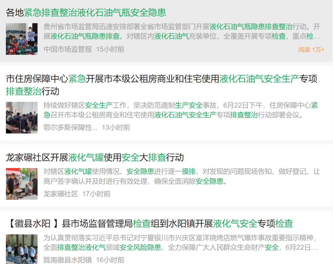 目前,全国各地正在紧急排查整治液化石油气瓶安全隐患,同时做好当前特别是节日期间的燃气安全相关工作。