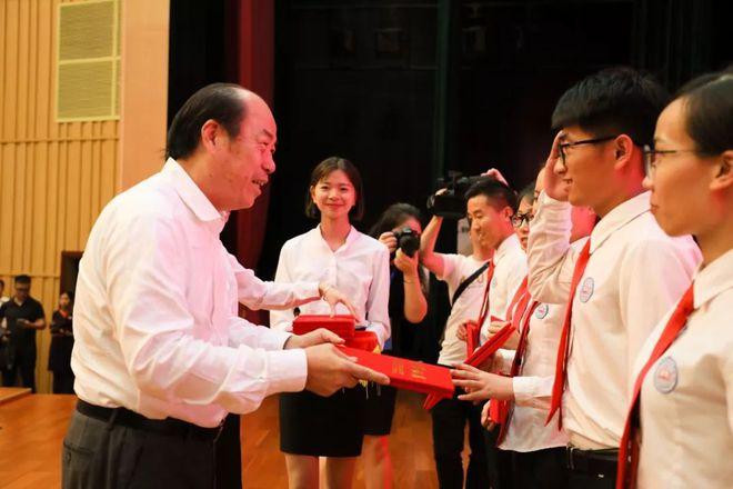 校领导为全体毕业生送上毕业礼物。