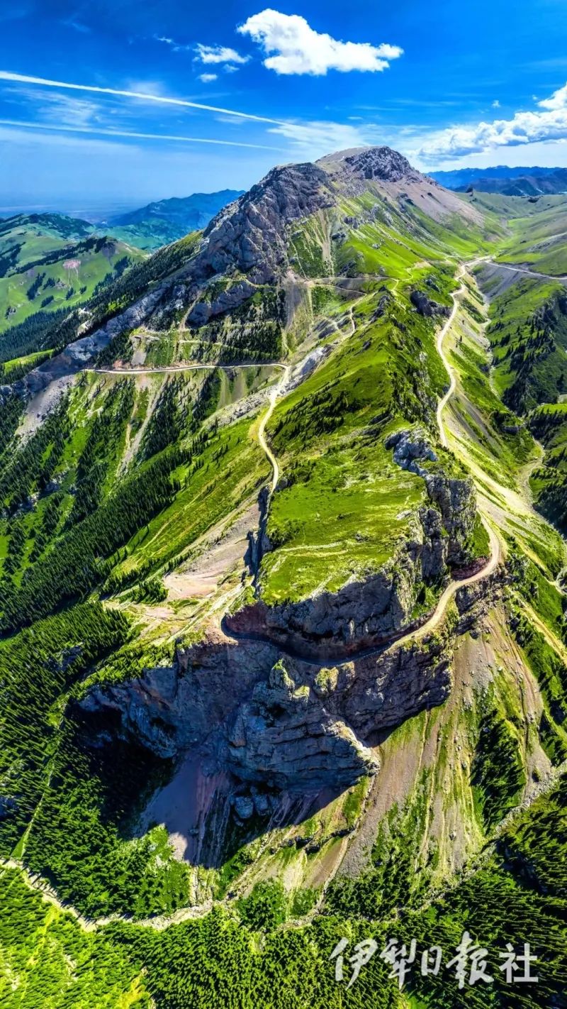 伊昭公路沿途的美丽风光,图片来源:新华社视频。