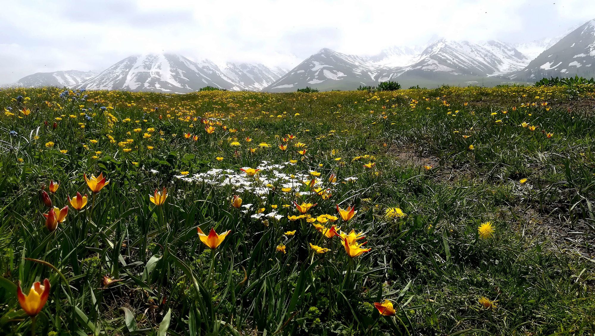 在高海拔的山脊上,野花盛开得绚烂多姿。