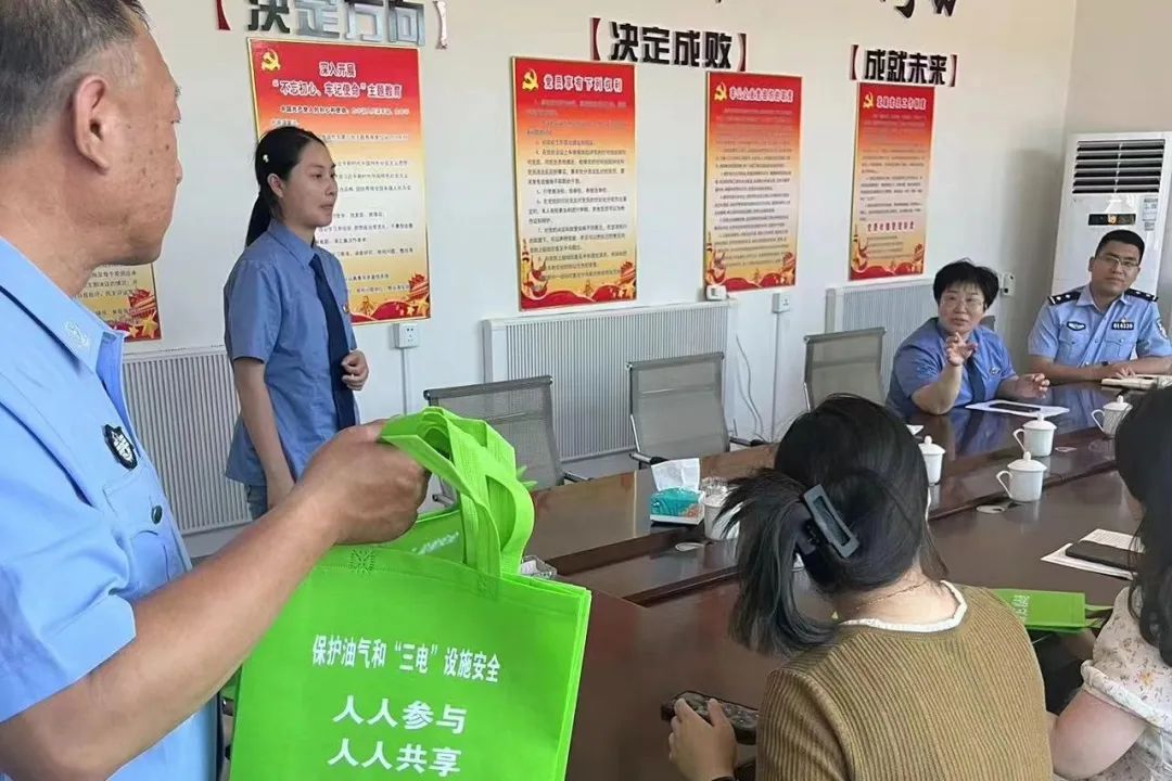 为了进一步提高广大群众对油气和“三电”设施安全保护重要性和必要性的认识,无极县人民检察院近日组织干警到河北赫宝新能源科技有限公司,开展了一场关于油气和“三电”设施安全保护的法治宣传活动。