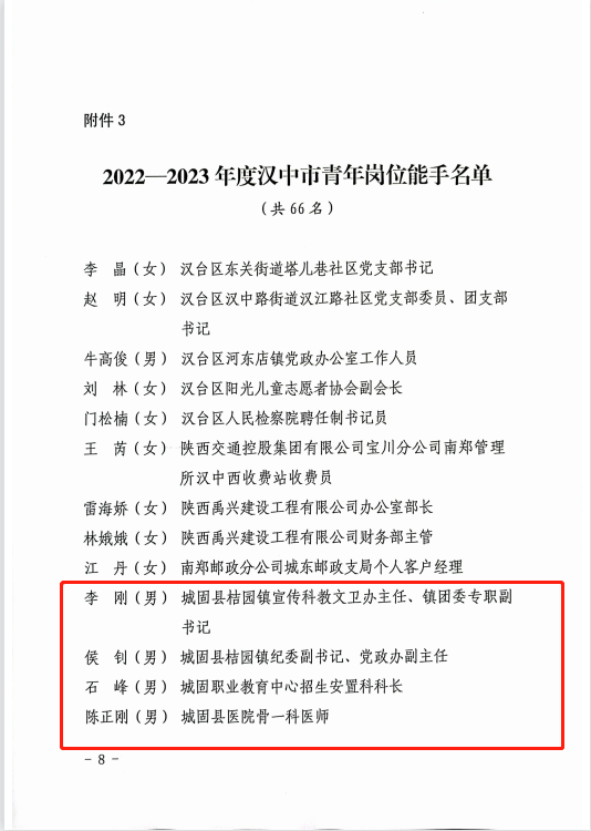 ▲2022-2023年度汉中市青年岗位能手。
