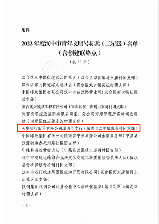 ▲2022年度汉中市青年文明号荣誉称号