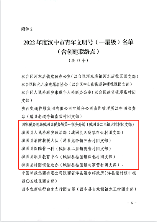 城固县共有1个集体被评为2022年度汉中市青年文明号标兵(二星级),另有6个集体被评为2022年度汉中市青年文明号(一星级),9名青年被评为2022-2023年度汉中市青年岗位能手。我们向获得表彰的集体和个人表示热烈祝贺!