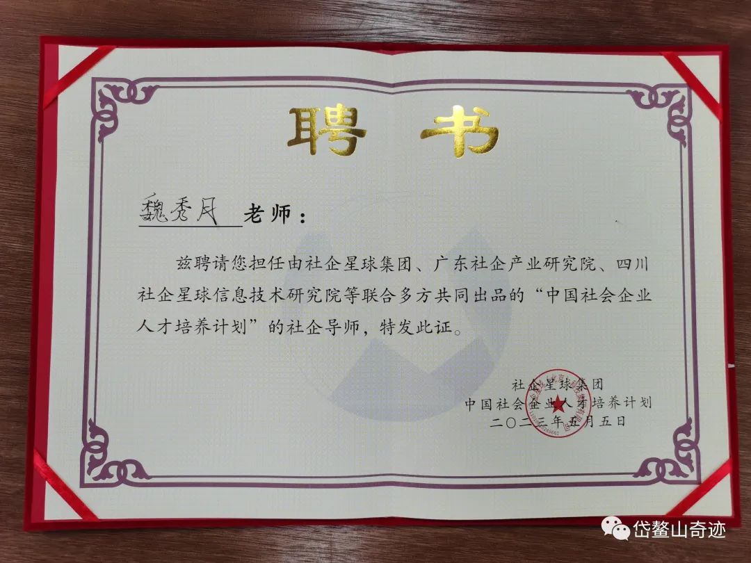 岱鳌山女儿魏秀月被任命为中国社企人才培养导师。