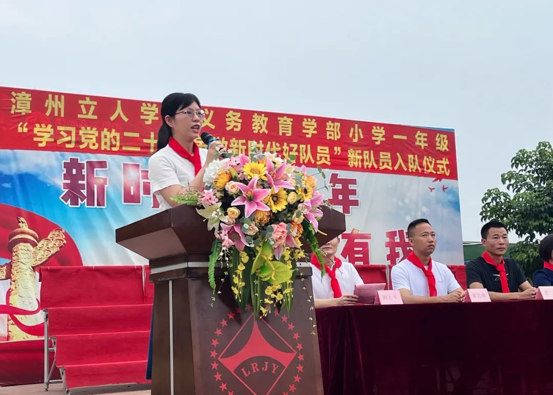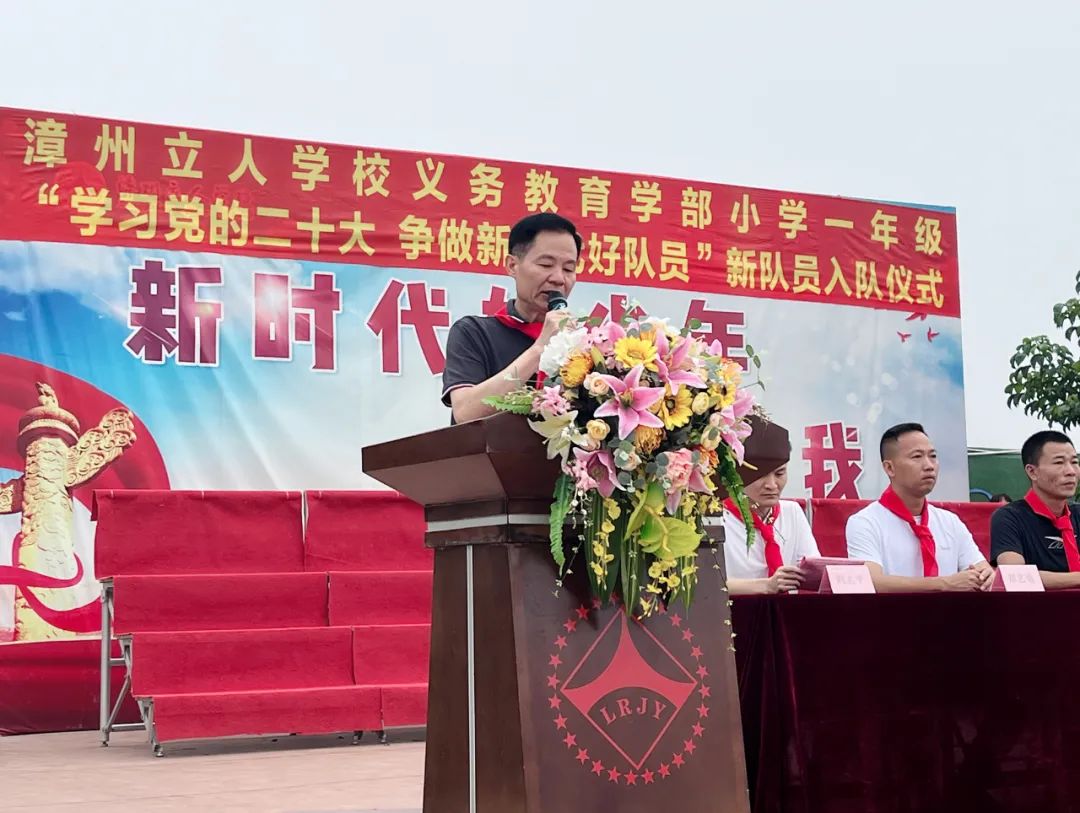 希望新加入少先队的小朋友们能够从小养成良好的习惯。要听从老师的教导,热爱自己的班级,遵守学校的纪律,为班级争得荣誉,为立人学校增光添彩!我们要传承红色基因,向着星星火炬,争做新时代的好少年!
