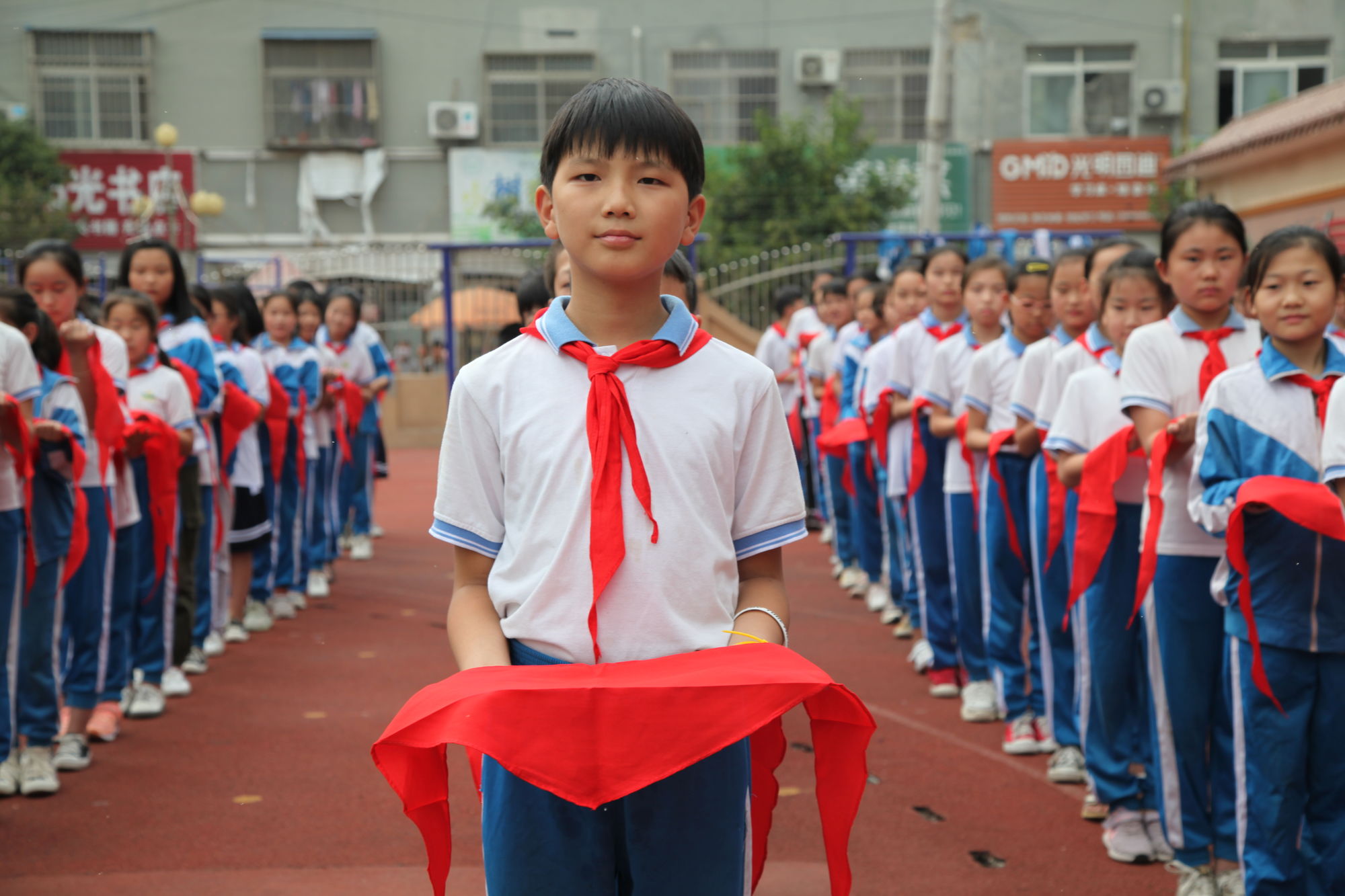红领巾映照出一张张灿烂的笑脸。