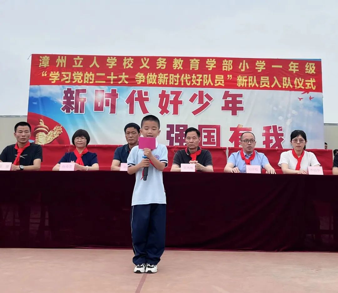 编辑:为了深入学习、宣传、贯彻党的二十大精神,教育和引导学生坚定不移地听从党的指示、跟随党的步伐,立志成为有理想、敢于担当、能吃苦、肯奋斗的新时代好少年。5月18日上午,漳州立人学校义教部(小学)举行了一场“学习党的二十大 争做新时代好队员”的新队员入队仪式。