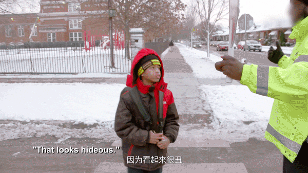 每天,他在马路中央举着牌子,指挥着交通。