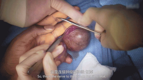 原来,肿块底部有一根神经。