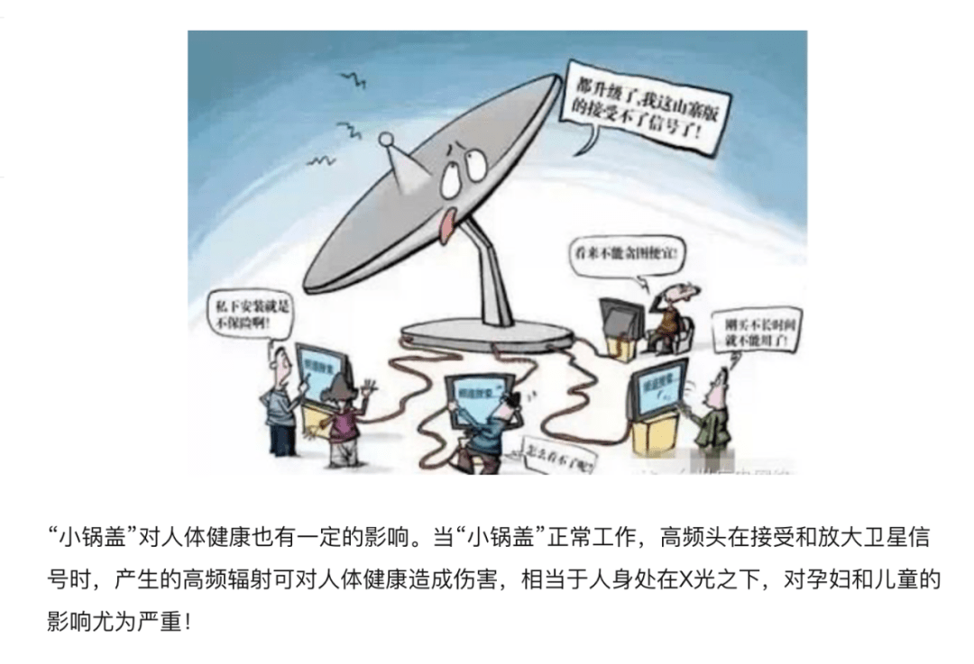 有些“小锅盖”可能会接收含有暴力和低俗内容的节目,这对青少年的健康成长和社会的稳定都会产生极大的危害。此外,由于“小锅盖”无法接收本地新闻,这严重阻碍了当地党和政府政策的传达和落实,削弱了舆论引导能力。