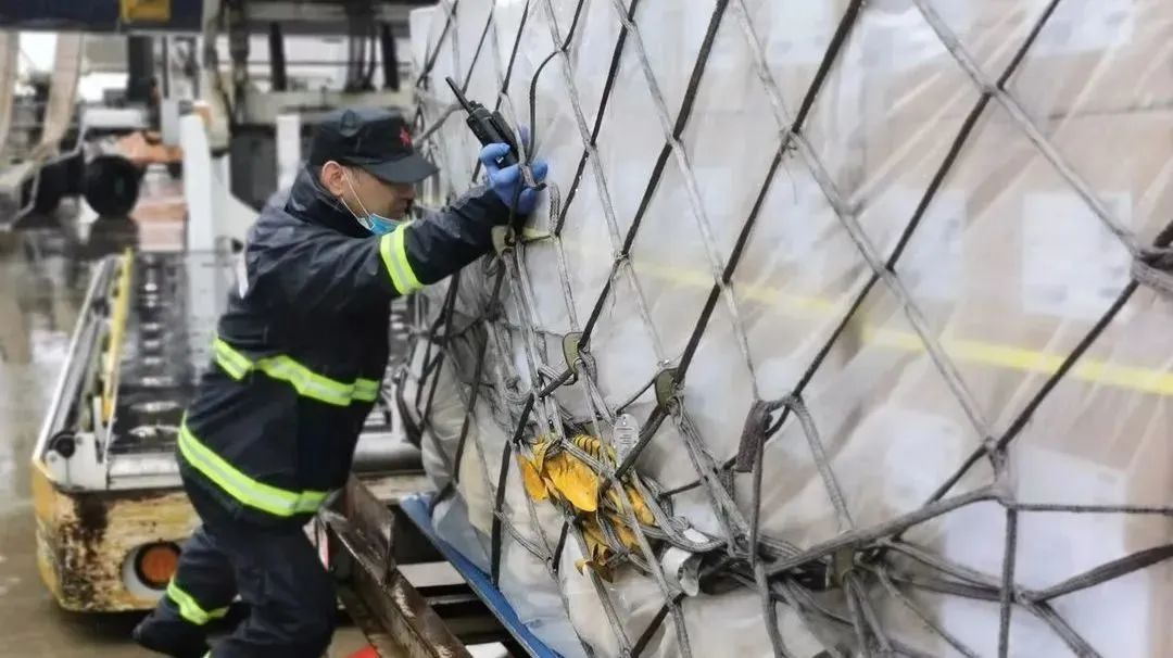 △地服人员负责进出港行李接驳车的“上盖下垫”工作,他们会将行李上盖遮雨布,下垫塑料纸,以防止旅客行李被雨水打湿受潮。