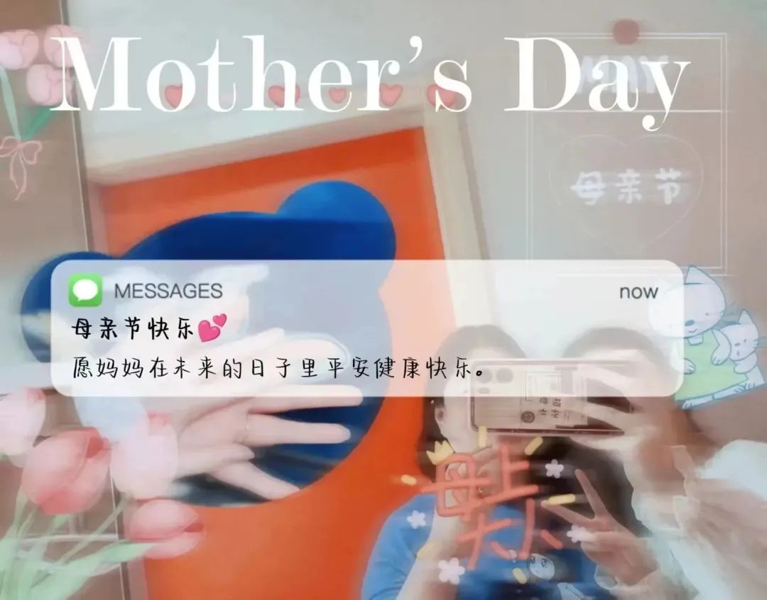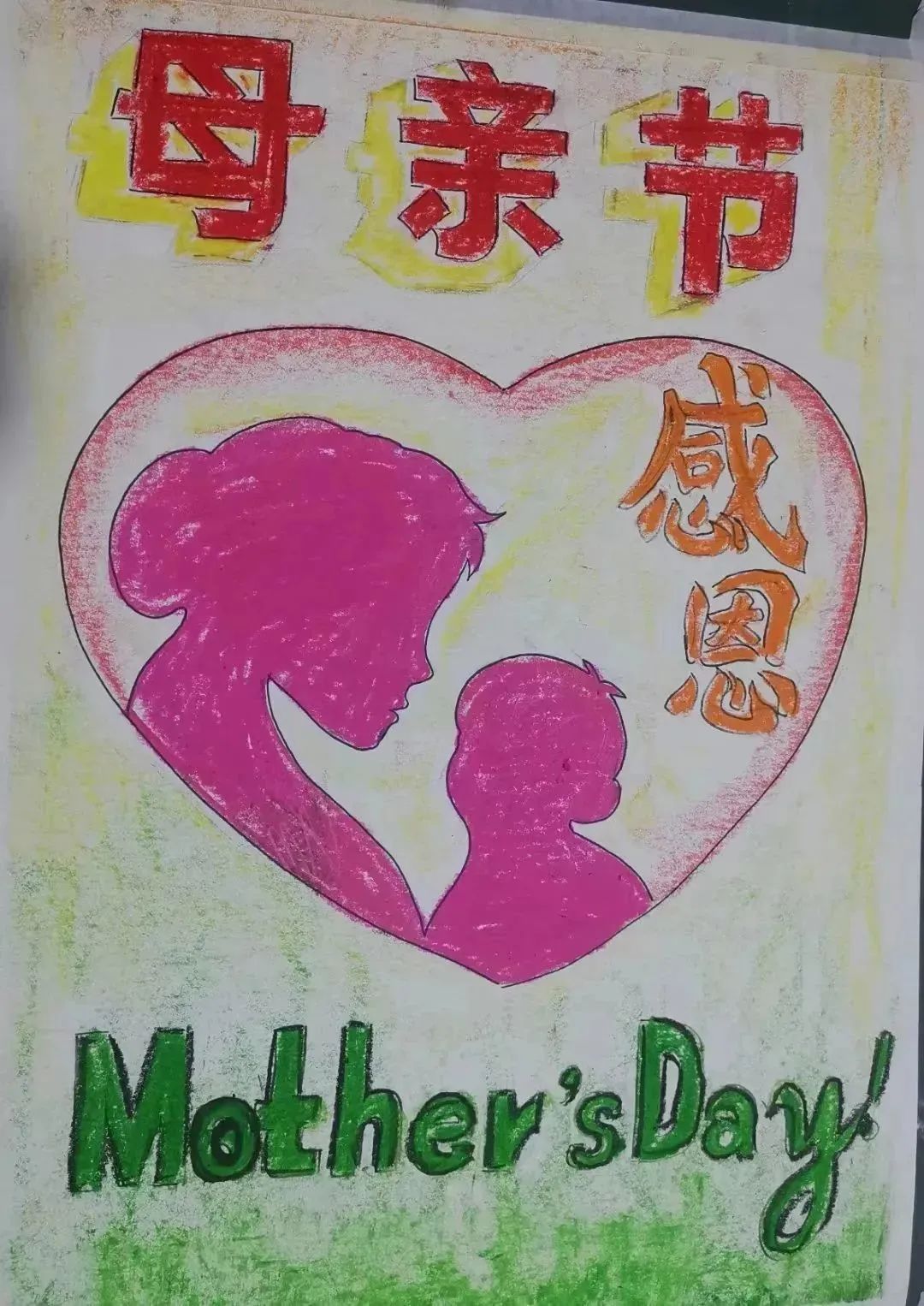 红色与爱心象征着母亲的爱,它醒目而温暖。黄色则代表着母亲的温柔与体贴。在爱心图案中,母亲的怀抱与孩子们的微笑交相辉映,洋溢着温柔与爱意。我们应当心存感激,感激母亲给予我们生命,给予我们无微不至的照顾。在绿意盎然的背景下,用第2种语言——英语,送上我们的祝福。