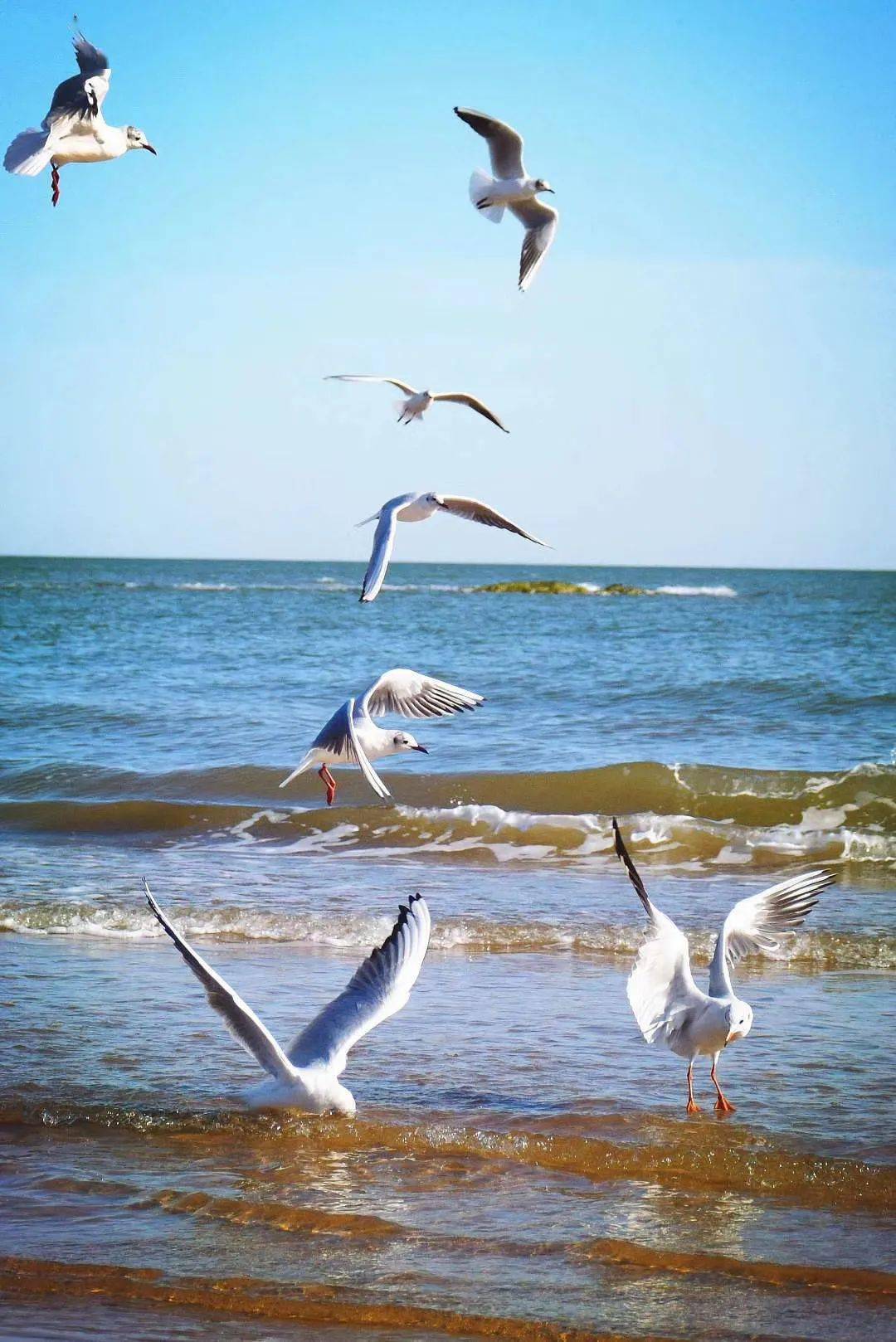 提起相机,拍摄海鸥飞翔的天空