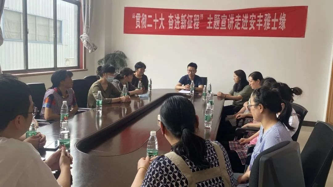 近期,安丰镇在东台市雅士缘纺织有限公司举办了一场主题为“贯彻二十大,奋进新征程”的宣讲活动。镇经发局工作人员韩旭在宣讲会上,结合党的二十大精神,围绕企业改革发展等主题进行了深入的宣讲和解读。同时,他还带领企业内党员干部共同学习了习近平总书记的重要讲话精神。韩旭呼吁企业党员干部要系统地把握和深刻理解党的二十大精神,坚定不移地用习近平新时代中国特色社会主义思想来武装头脑、指导实践和推动工作。他希望企业能够在新时代新征程中实现更好的发展。