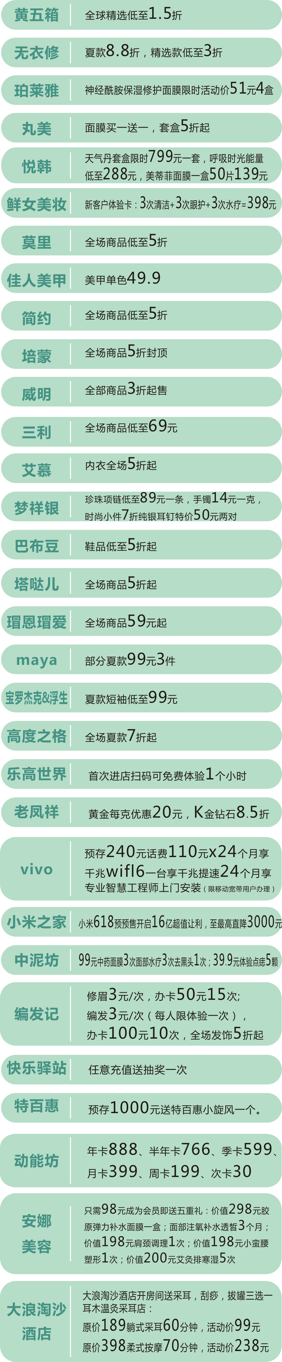 注:以上价格均为吊牌价。更多活动详情请咨询店内。
