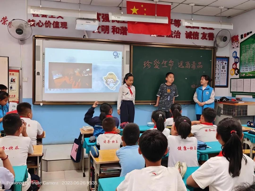 6月24日,薛家湾镇第一小学一年级一班班主任门晓燕组织了38名禁毒小讲师开展禁毒宣讲培训。禁毒讲师沈波详细讲解了如何开展禁毒知识宣传和如何使用禁毒毒害体验装备。在“6·26”国际禁毒日,38名小讲师分成12组,同时在12个班开展“健康人生绿色无毒”禁毒主题讲座,为600多名学生普及禁毒知识。学校、家长和学生都给予了高度评价。