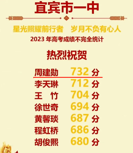 宜宾一中一直以来都备受瞩目,今年更是有周建勋同学一鸣惊人,他来自宜宾一中,在升学总分方面取得了732分的好成绩。