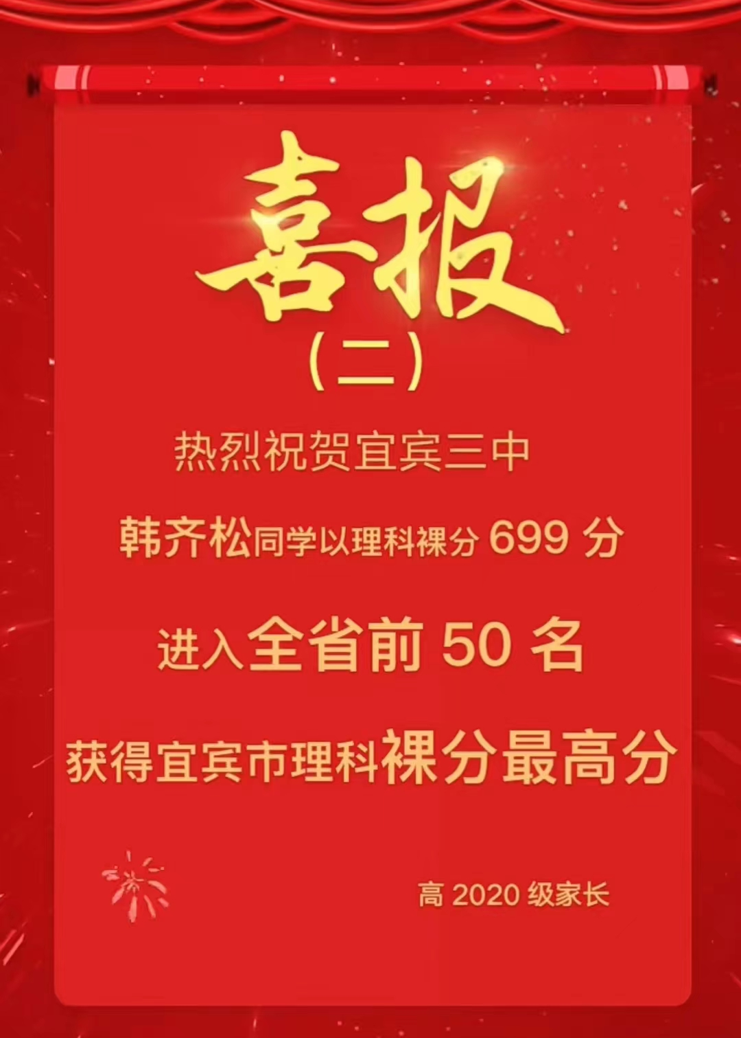 宜一中共有三名同学突破了700分(含加分),这足以证明老牌名校一中的底蕴实力。