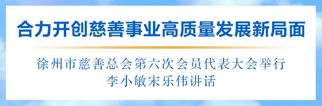 宋乐伟代表市委向省慈善总会长期以来对徐州工作的指导帮助表示感谢,向各位代表和积极投身徐州慈善事业发展的社会各界人士致以诚挚问候。他说,近年来,徐州市委、市政府将慈善事业作为促进社会组织参与社会救助、改善基本民生的重要方面,推动全市慈善力量不断壮大,慈善活动蓬勃开展,凡人善举不断涌现,文明之花竞相开放。迈上新征程,要深入学习贯彻党的二十大精神,坚持救助为本,提升救助精准性,增强帮扶协同性,扩大品牌影响力,彰显扶危济困新成效。要坚持募捐为源,拓展慈善募集渠道,创新募捐运作机制,完善捐赠激励机制,探索慈善募捐新路径。要坚持依法兴善,强化依法规范管理,不断提升慈善公信力;规范慈善组织信息公开行为,推动慈善工作在阳光下运行;聚焦专业、高效,提升慈善组织专业化程度、慈善工作专业化水平。要坚持宣传引领,倡导“积善修身”理念,弘扬“兼济天下”精神,坚定“天下大同”追求,引领崇德向善新风尚。市慈善总会要发挥好对基层慈善组织的引领、协调和指导作用。各级党委政府要一如既往支持市慈善总会及各级各类慈善组织发展,全面落实各项扶持政策,全力营造慈善事业、慈善组织发展的良好环境。