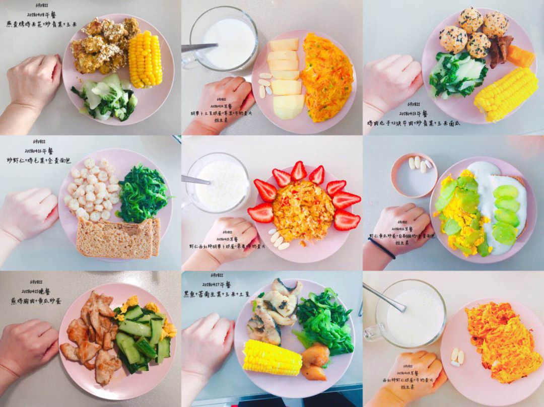 早午餐按照一拳蛋白质+一拳蔬菜+一拳粗粮主食,晚餐去掉主食的标准,要求早餐吃饱,午晚餐吃到八分饱,上下午饿的时候可以加餐西红柿或黄瓜。