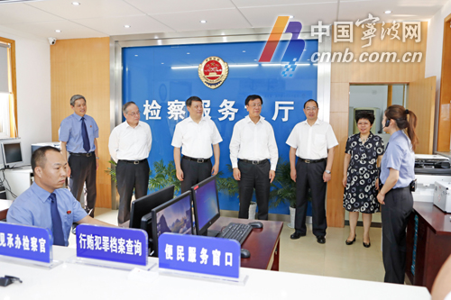 6月13日,最高人民检察院党组书记、检察长应勇率领最高检调研组莅临重庆市南岸区检察院。他们先后参观了该院的12309检察服务中心、检察听证室和远程提讯室,并详细询问了基层检察工作中所面临的困难和问题。