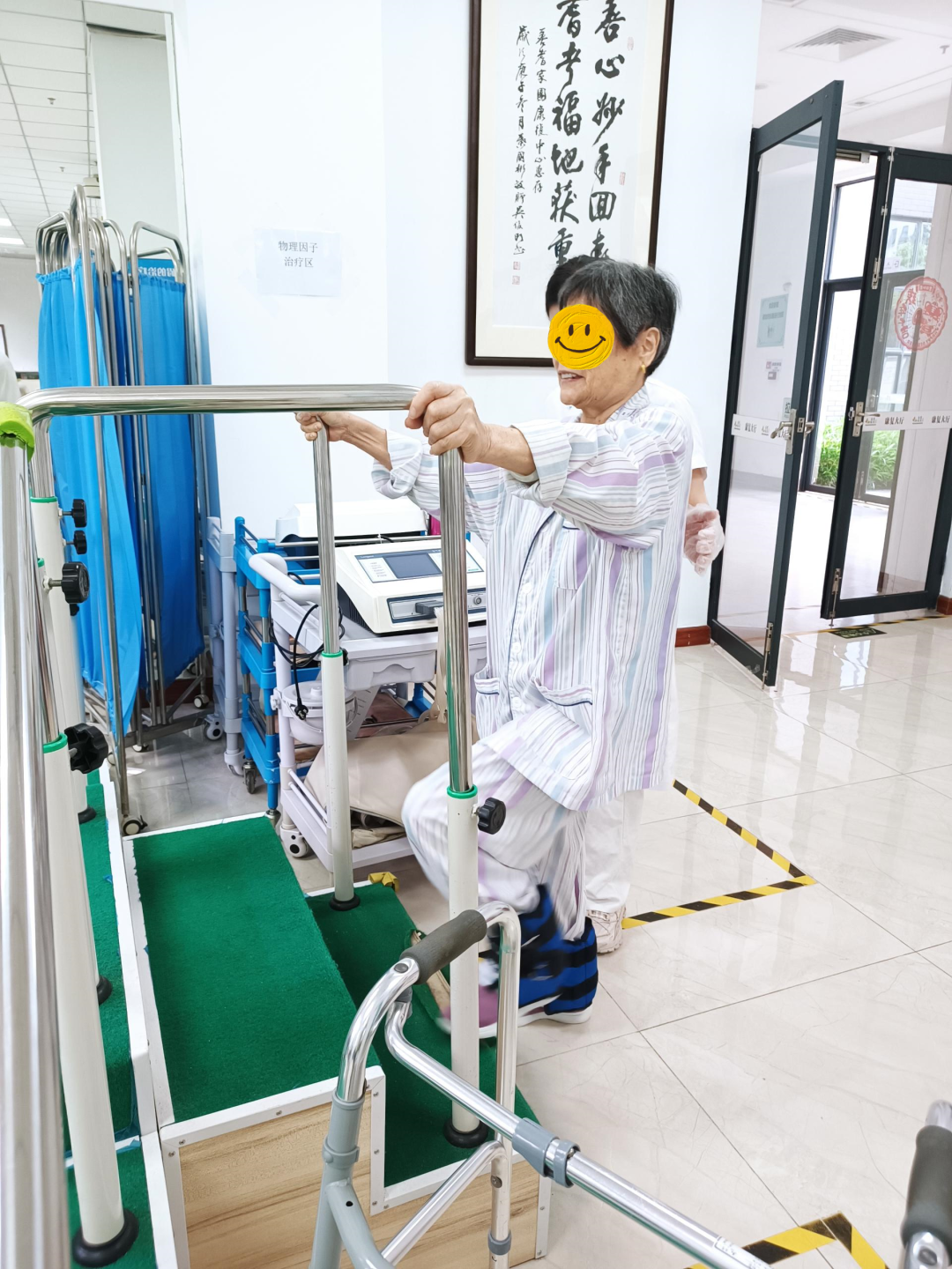 除此之外,娟姨还接受了双下肢步行训练、针灸治疗、中频治疗和红外线治疗。从一开始只能小碎步慢慢走,步态不稳,到现在能正常行走,甚至负重五公斤走路,康复训练是一个长期的过程。娟姨仍然在坚持双下肢步行训练,相信她的肢体力量会越来越好。