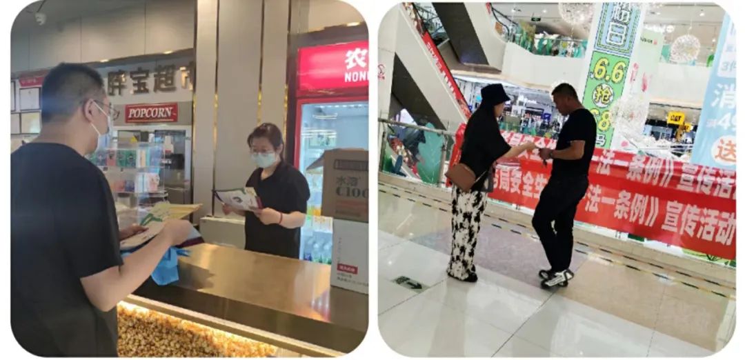 盟商务局联合锡林浩特市商务局深入锡市大型商场、超市开展安全生产宣传咨询、“一法一条例”进企业活动。商务部门工作人员通过发放宣传单、宣传册等方式向广大群众宣传《安全生产法》《内蒙古自治区安全生产条例》,普及公共聚集场所消防与安全知识、用电安全知识、液化气钢瓶使用常识、人员应急疏散等各类安全生产常识。并结合实际案例,围绕安全生产注意事项、紧急情况处置措施等方面向企业员工进行科普,对群众提出的问题作出详细解答,引导广大群众人人讲安全、个个会应急。
