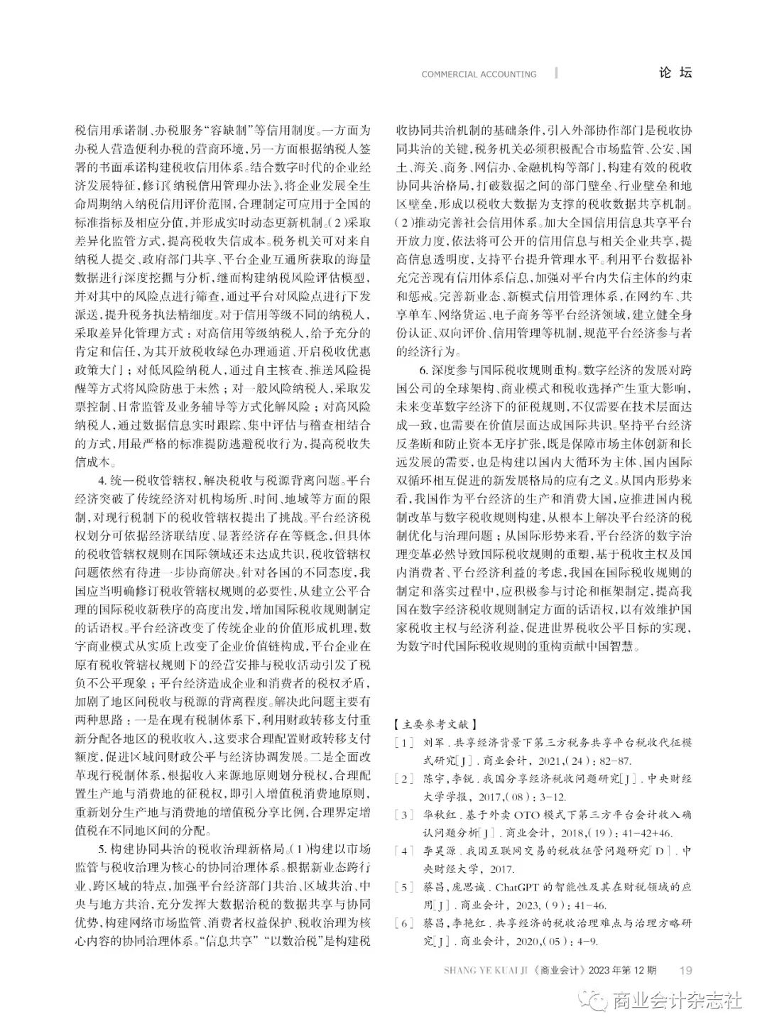 [6]蔡昌和李艳红.共享经济下的税收治理难点与治理方略研究[J].商业会计,2020年(05):4-9。