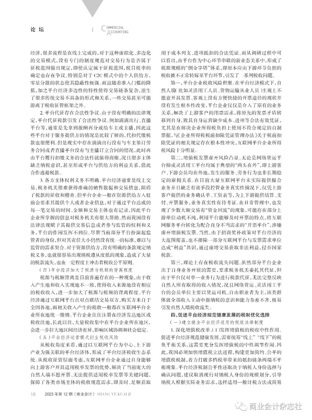 (一)由于平台经济的快速发展,现有的税制难以满足现实需求。
