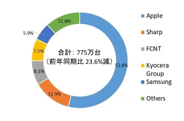 6月24日,市场调研公司IDC公布了数据报告。报告显示,苹果iPhone在日本手机市场占据了半壁江山,市场份额达到了53.8%,在智能手机市场中的占比为55%。
