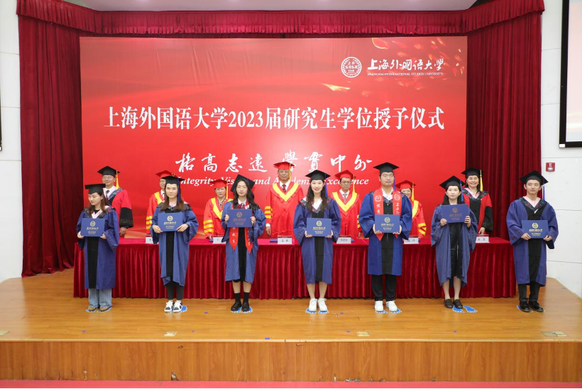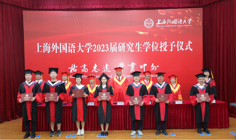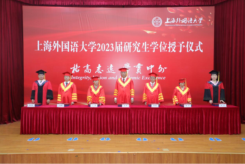 2023年6月8日,上海外国语大学举行了2023届研究生学位授予仪式。出席仪式的人员包括上海外国语大学党委书记姜锋、校长李岩松、党委副书记王静、党委副书记兼纪委书记钱玲、副校长衣永刚、教务处处长兼国际教育学院院长金慧。仪式由研究生院院长兼德语系系主任陈壮鹰主持。