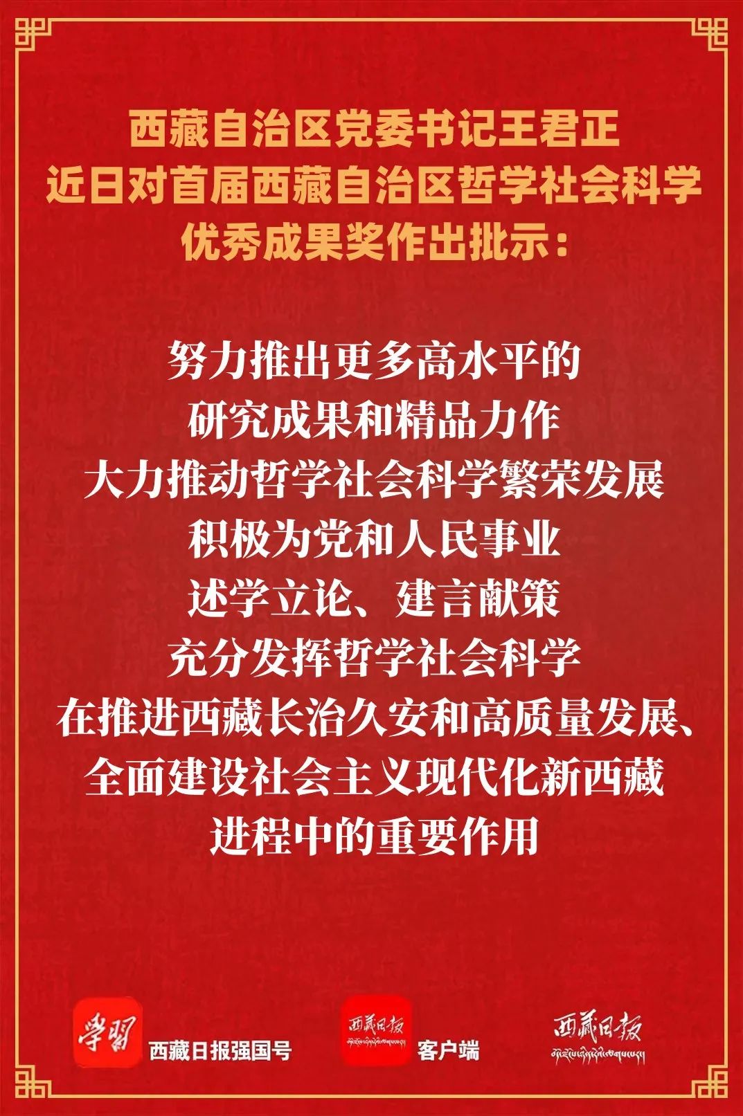 王君正对首届西藏自治区哲学社会科学优秀成果奖作出了批示。