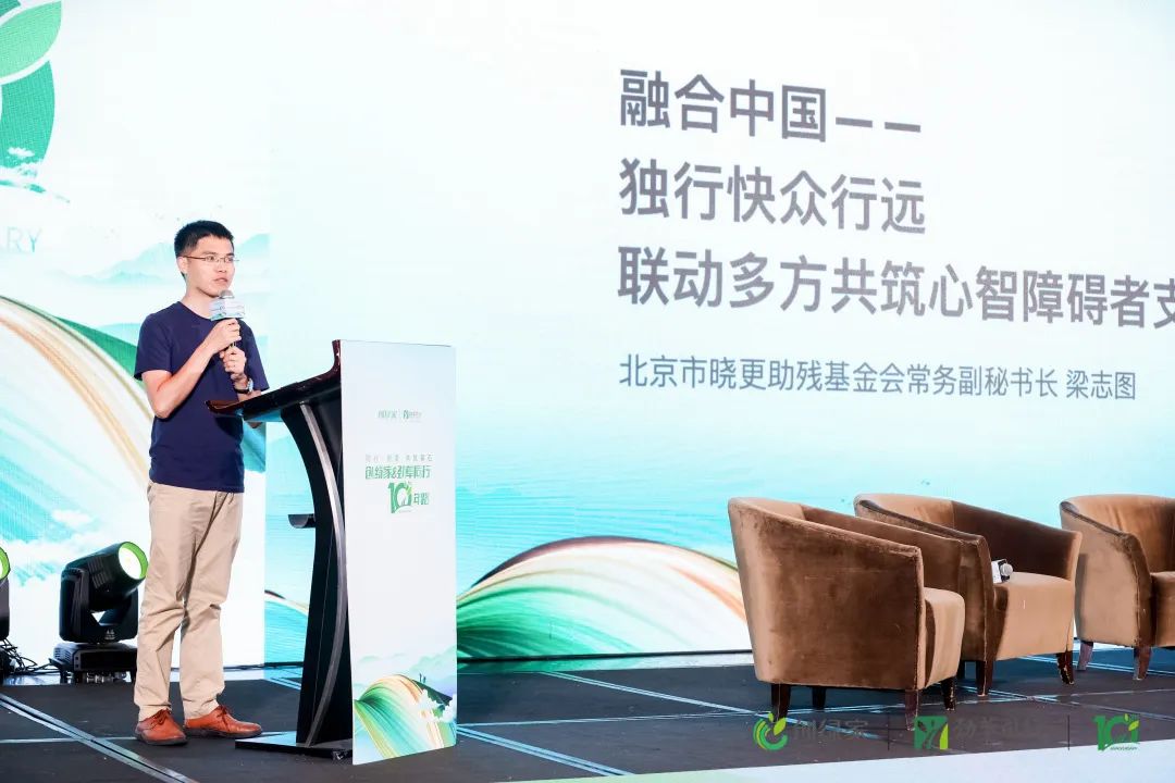 北京市晓更助残基金会副秘书长梁志图分享了晓更基金会如何联动多方共同构建行业基础的经验。