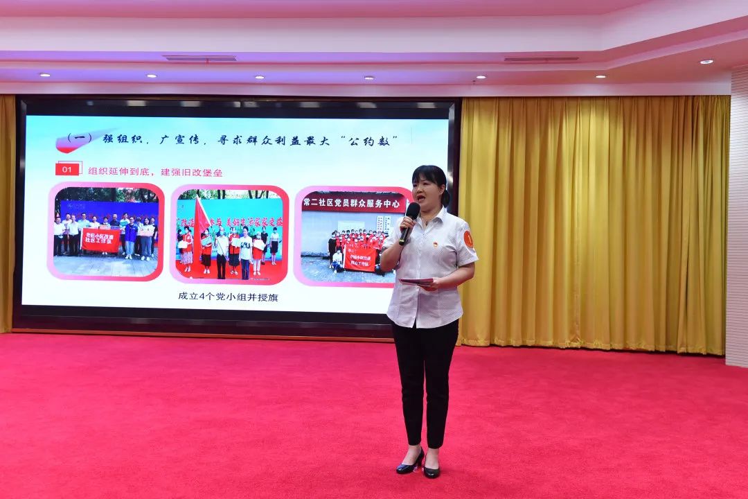 为了进一步加强社区党组织书记队伍建设,全面提升其抓党建、强治理、优服务的能力水平,迎接建党102周年,江汉区于6月25日下午举行了社区党组织书记能力竞赛区级突围赛暨共同缔造创新案例评选大赛。