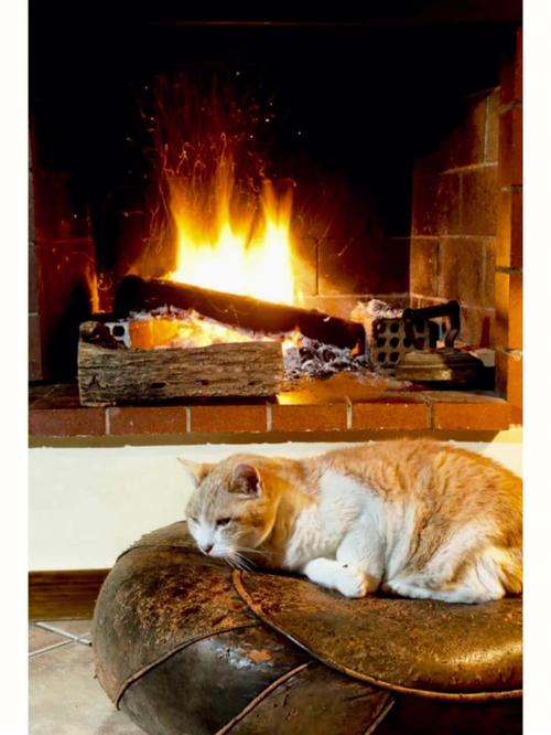编辑:这是一个宁静的夜晚。壁炉里燃着炭火,一只猫慵懒地躺在那里。