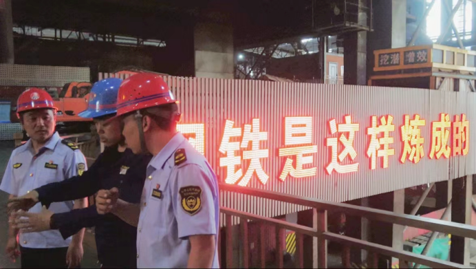 6月26日,天气炎热、热浪袭人,韩城市龙钢公司炼钢厂炉内瞬时温度可达1800℃,转炉平台温度高达70摄氏度,成为名副其实的“火蒸笼”,这是炼钢厂“最火热、最辛苦”的地方之一,“火热”程度可想而知。为推动空气质量持续改善,无畏“炙烤”,深入“火蒸笼”内开展督导检查。现场他们仔细查看自动监控设施、设备运行记录、数据传输情况等,从专业角度判断企业自动监测数据是否准确,为企业进一步规范工作程序、提升运维水平等提出指导建议。