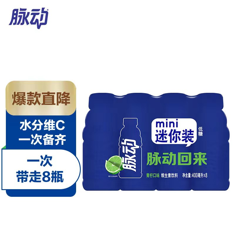 今天提供的活动价格非常优惠,只需19.9元即可购买8瓶脉动!请注意,今天提供的都是400毫升的迷你装。如果您感兴趣,可以扫描二维码加入群聊。