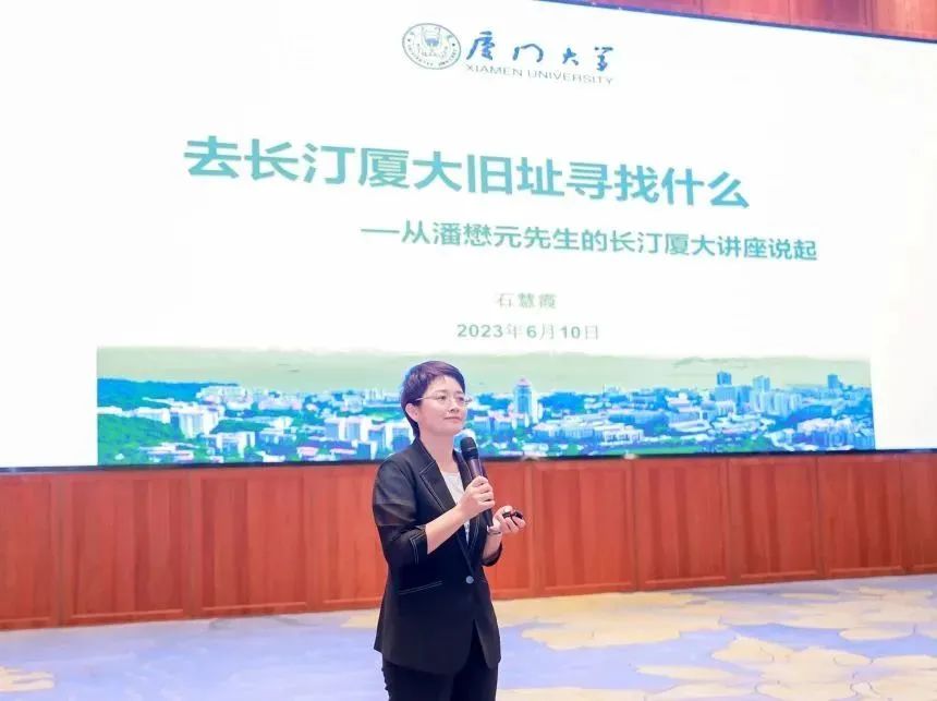 作为本次讲座的特邀嘉宾,石慧霞分享了《去长汀厦大旧址寻找什么》的内容。她以潘懋元先生的长汀厦大讲座为楔子,通过描述老学长的生活细节和言语片段,描绘了长汀厦大的风土人情。她提到,在萨本栋治校期间,厦大的学生虽然物质匮乏,但精神却非常充实。即使古城文化闭塞,即使战争炮火纷飞,厦门大学仍然在战争前线屹立不倒,培养了何宜慈、郑道传、谢希德、姚一苇等众多杰出学子。在纵向比较厦大今昔的过程中,石慧霞认为,历史是永恒延续的,传承是最好的纪念方式。