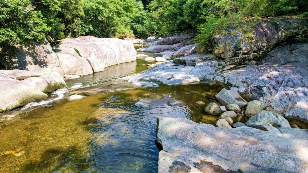 漫步在谷中,你会看到巨石横亘,龙潭相连。