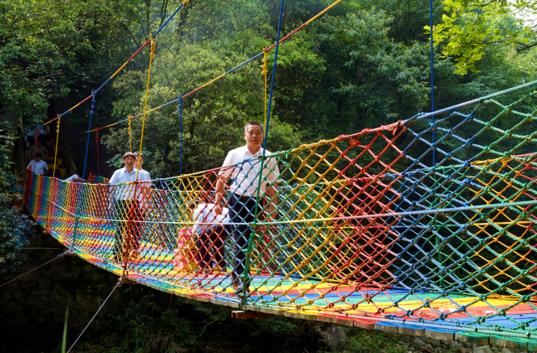 新建的网红打卡点——彩虹桥,是一个超级出片的地方。桥身刷满了五颜六色的颜料,就像一道彩虹飞架在峡谷上。随手一拍,蓝天白云便映入眼帘,无需美颜,自带滤镜,仿佛闯进了绿野仙踪。
