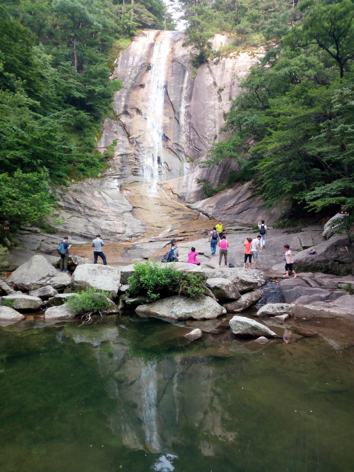 继续往前走,你会看到巨石平台下的一个深潭。据传说,潭中有一对千年鲤鱼。每当太上老君在此修炼时,鲤鱼就会游到潭面,静静地聆听。最终,它们参透了禅机,修成了正果,化为龙,并借着大雨飞升天堂。后人为了纪念这些鲤鱼,称这个深潭为“双龙潭”。这个潭深约30米,清澈见底。