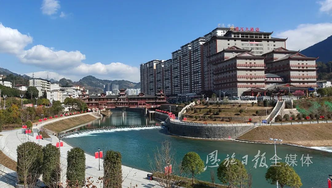 清江河畔的小屯堡,与屯堡大桥相映成趣。