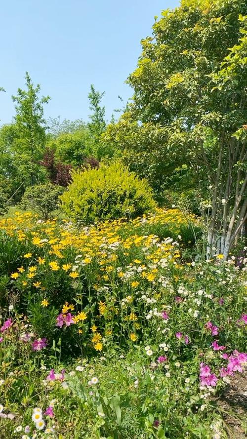 5月底,春天的尾巴,白塔公园的自然花境进入了最佳观赏期,繁花似锦。