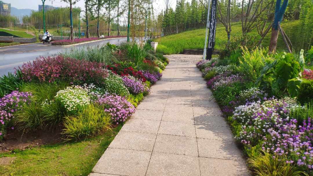 编辑:蓝粉色的无尽夏、飘逸的柳叶马鞭草、繁茂的大花金鸡菊以及柳叶白菀、琉璃菊、彩星花等特色植物的应用,使公园的色彩丰富度再次提升。