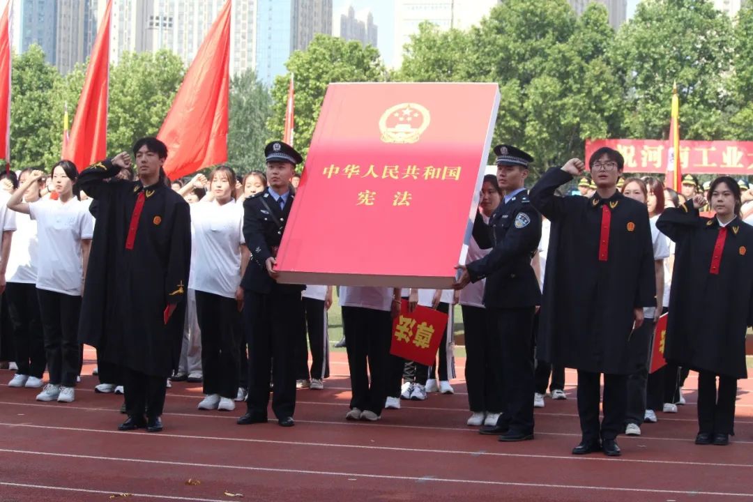 在开幕式表演中,法学院方阵表现出色。他们以宪法的变革为背景,展示了法学学子建设社会主义法治强国的决心和信心。此外,他们还以铿锵有力的宪法宣誓展现了法学学子的奋进力量!