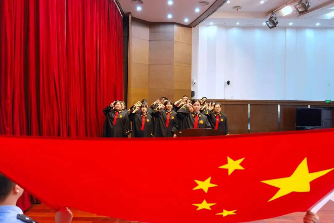 师生代表们以独特的队列、铿锵有力的步伐和整齐划一的动作,充分展示了法学院师生充满活力的青春力量和积极向上的校园风采。他们以青春的名义表达了对党和国家的热爱与赞美,展示了法学院学子的责任与担当。