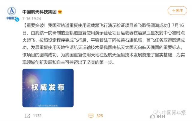 2021年7月16日,官方宣布了一项名为“过于先进,不便展示”的亚轨道飞行器计划。这项计划与“近地轨道轰炸机”(FOBS)技术相结合,能够以20倍音速进行突防,并且能够在全球范围内实现一小时打击。值得一提的是,这一概念是由美军提出的,而中国则成功实现了这一例子。