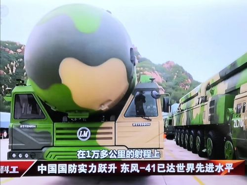 在2015年9月3日纪念抗战胜利70周年的大阅兵上,首次展示了DF-21D反航母弹道导弹。这是中国第一种能够对美军进行单向屠杀的反航母利器,其射程可达约1500公里。